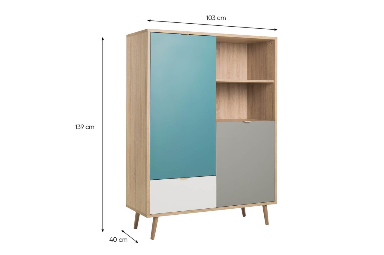 finori Highboard Cuba 103 cm Dekor Sonoma Eiche / Tricolor Kommode
