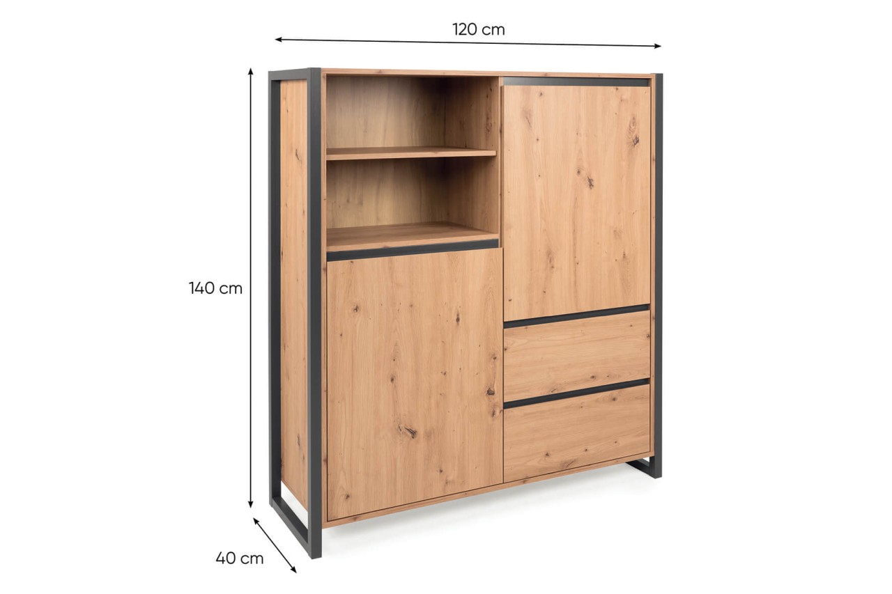 finori Highboard Denver 120 cm Dekor Artisan Oak / anthrazit Sideboard