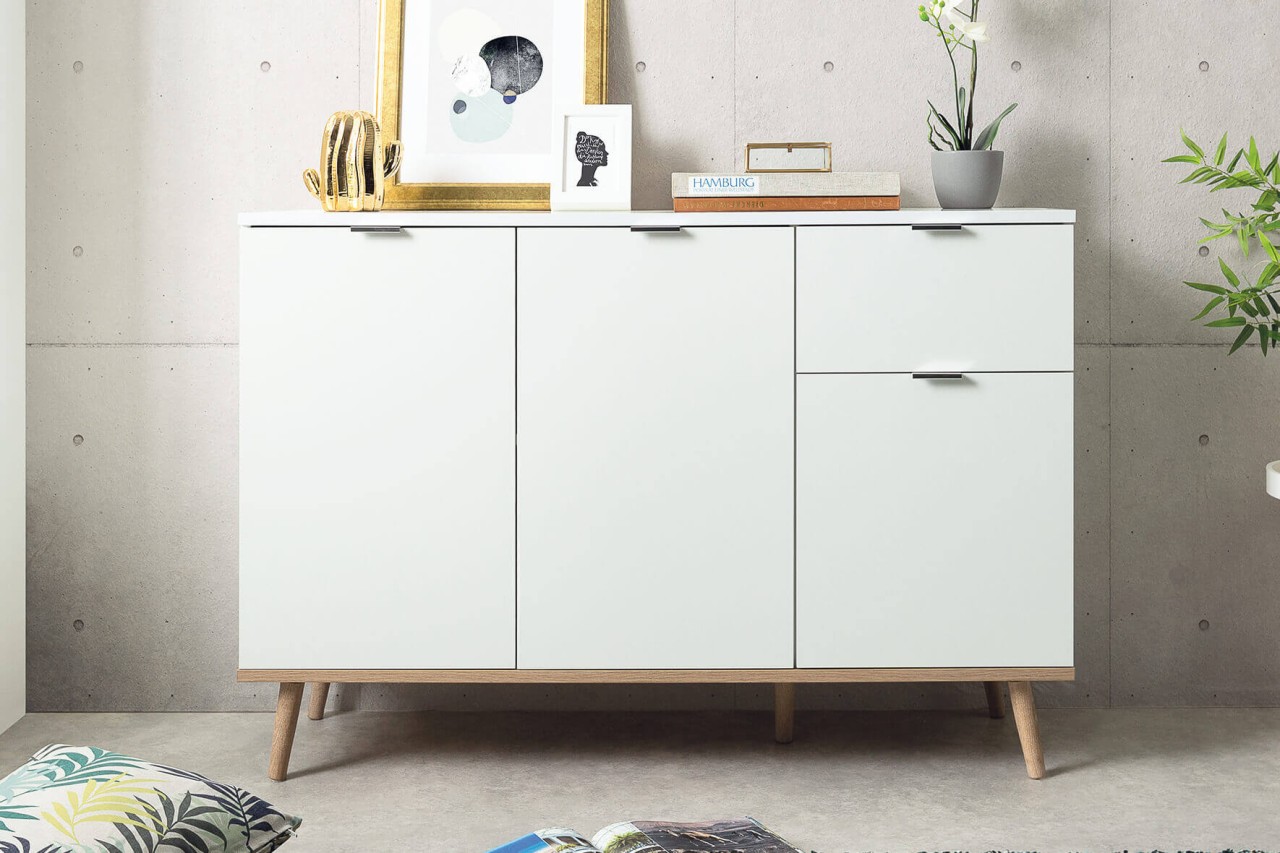 finori Kommode Göteborg 120 cm weiß Dekor Sonoma Eiche Wohnzimmerkommode