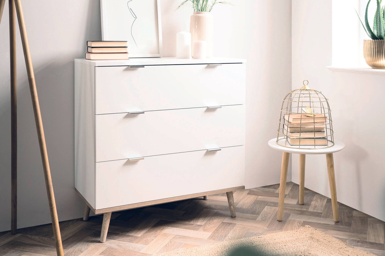 finori Göteborg 3034 Kommode weiß Dekor Sonoma Eiche foliert kleiner Beistellschrank