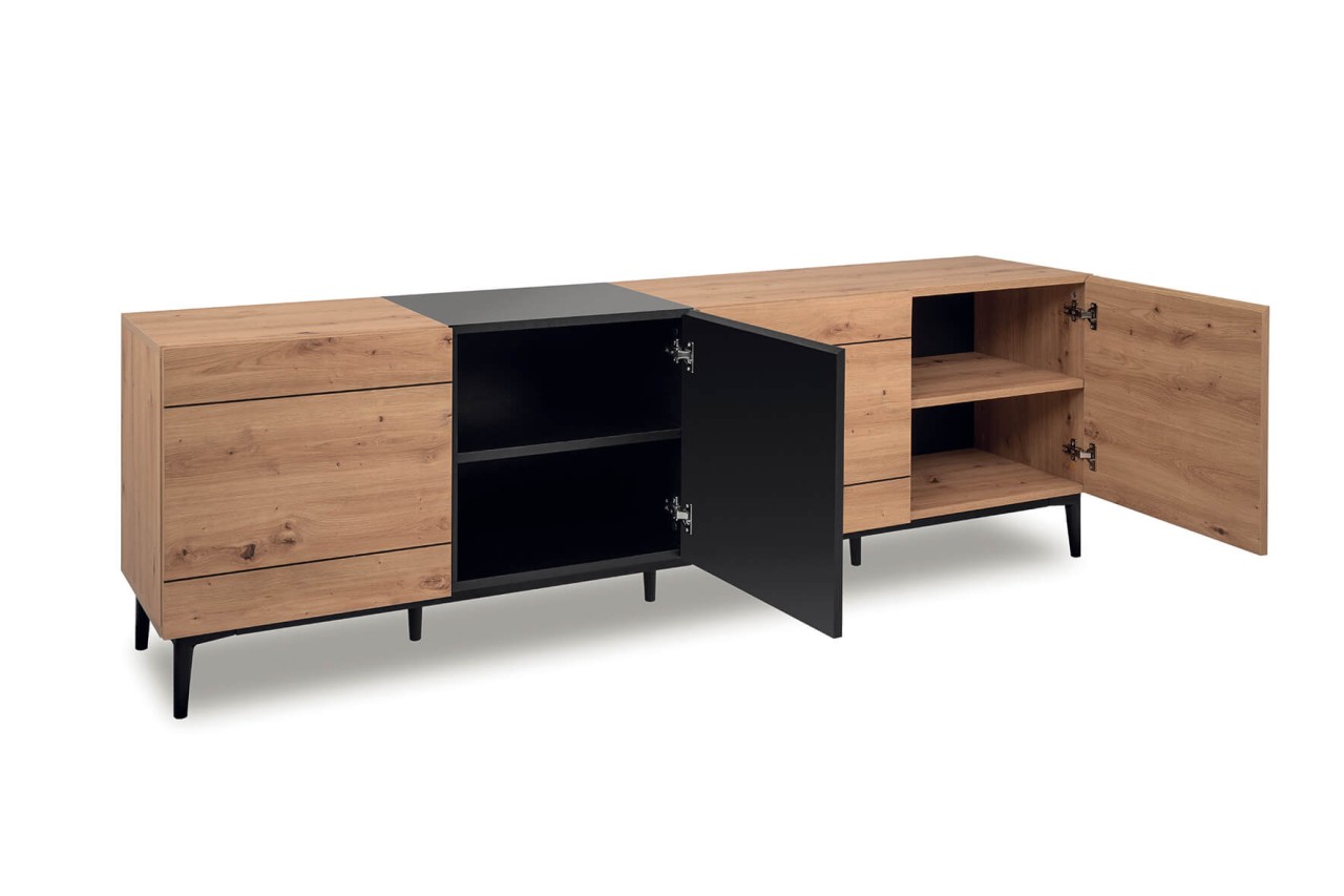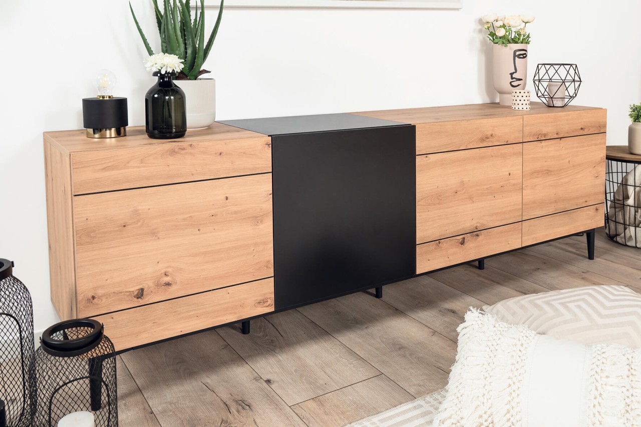 finori Lowboard Nola 200 cm grifflos Dekor Artisan Oak schwarz Hifi Kommode