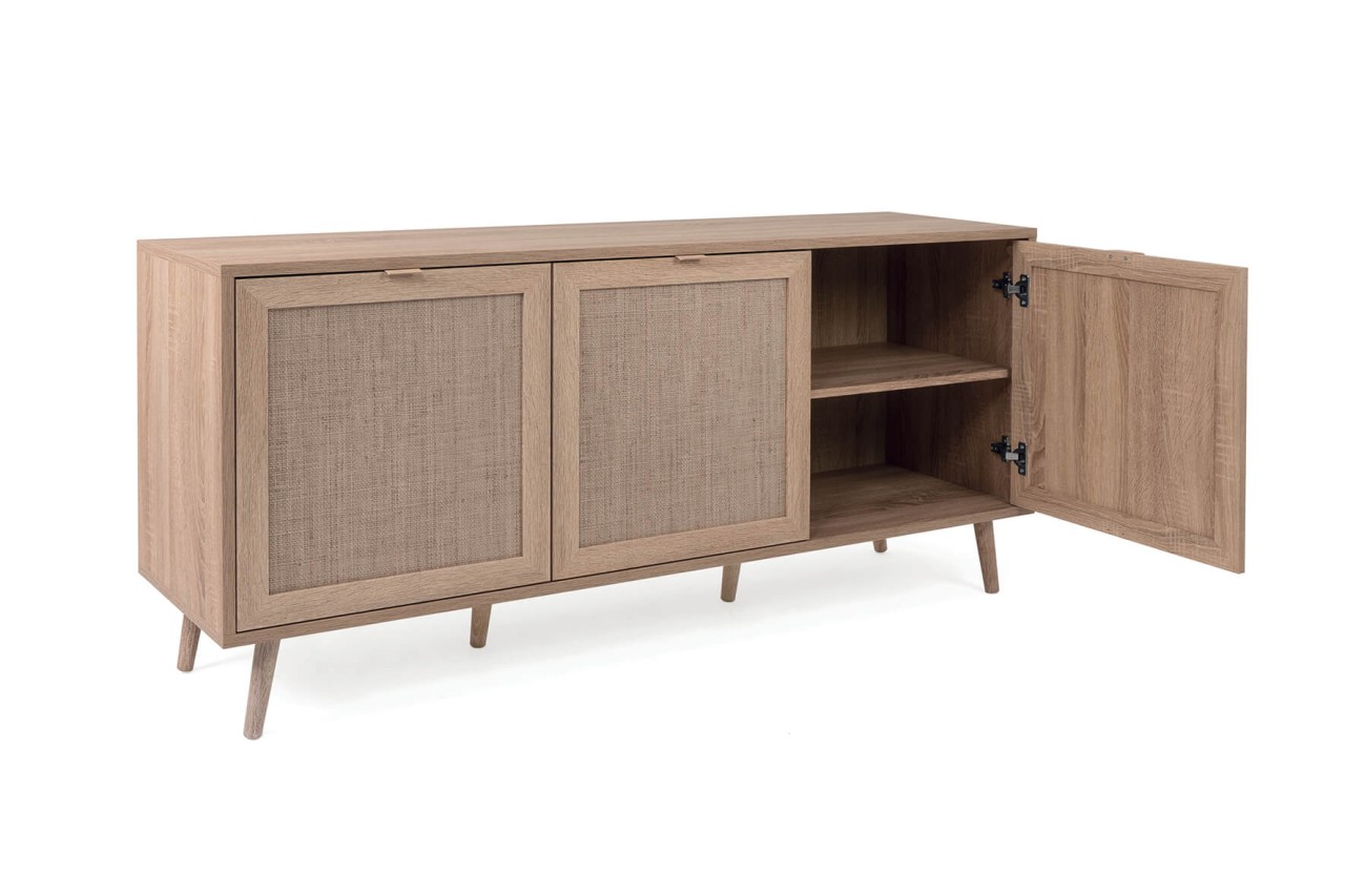 finori Sideboard Bali 150 cm Dekor Sonoma Eiche & Rafia Geflecht Kommode