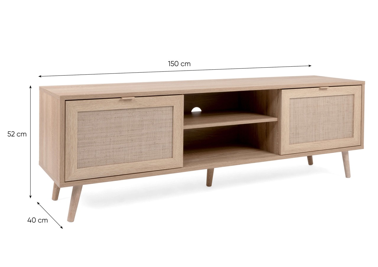 finori TV-Board Bali 150 cm Dekor Sonoma Eiche & Rafia Geflecht Lowboard