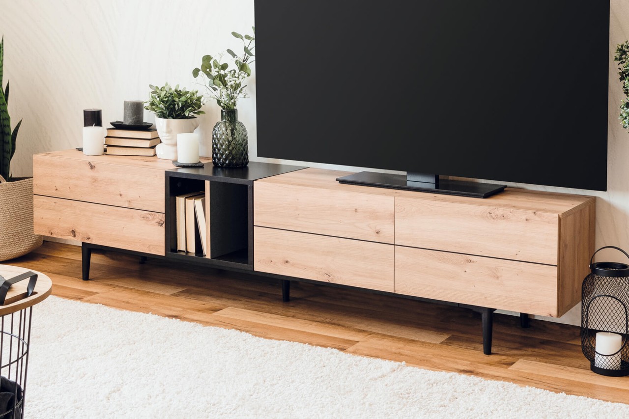 Produktinformationen "finori TV-Board Nola 195 cm Dekor Artisan Oak schwarz Lowboard Fernsehertisch"