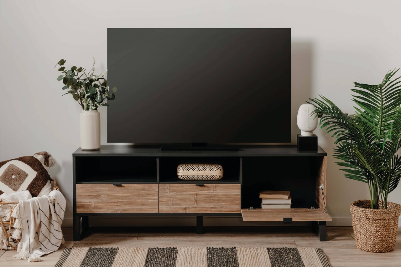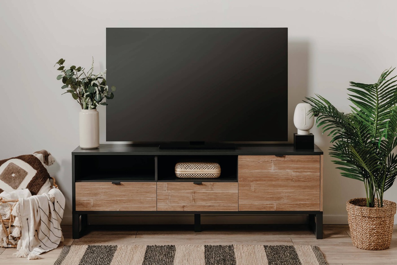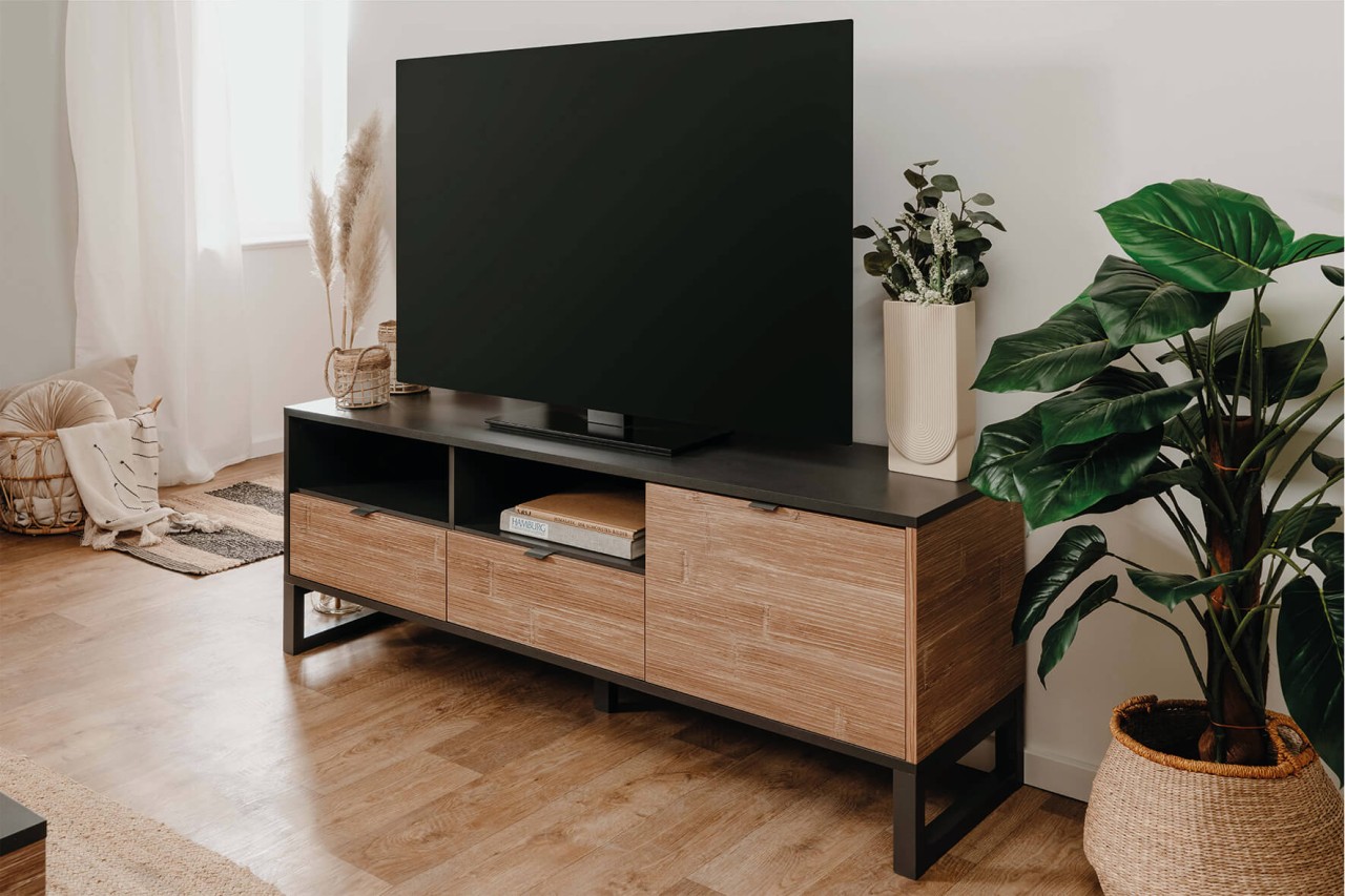 Produktinformationen "finori TV Sumatra Anthrazit / Bambus Industrial-Look 160 cm Fernsehschrank"