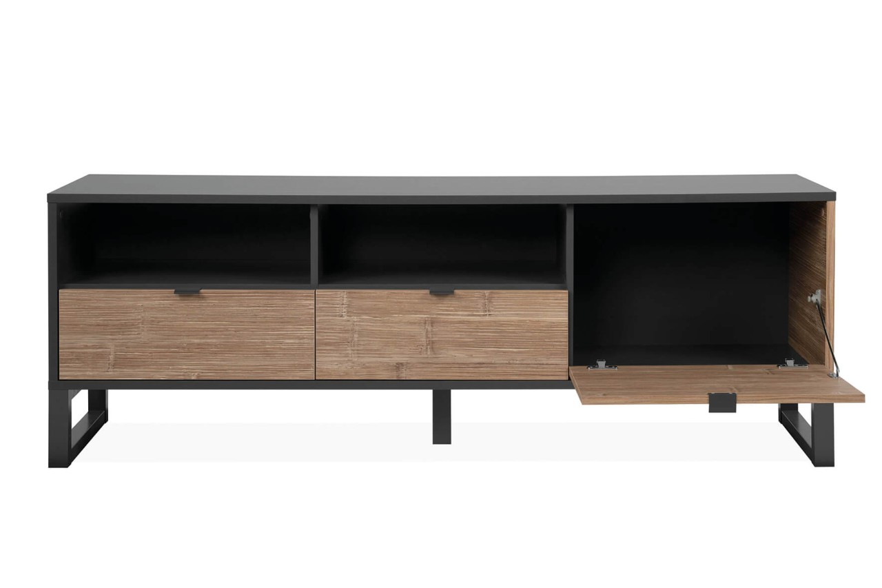 finori TV Sumatra 3250 Anthrazit / Bambus Industrial-Look 160 cm Fernsehschrank Wohnzimmer