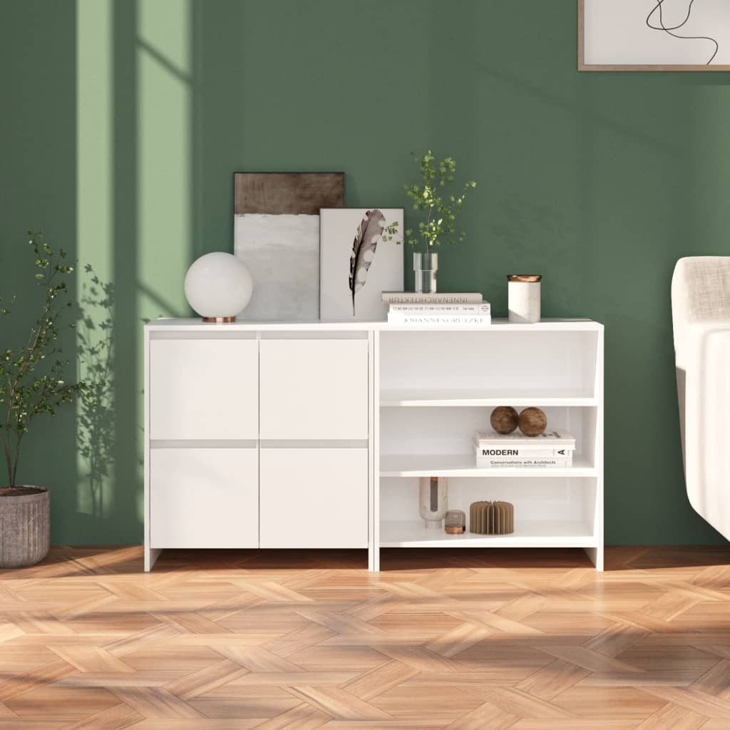 tinkaro 2-tlg. Sideboards GINO Holzwerkstoff Beistellschränke Weiß Hochglanz-Weiß