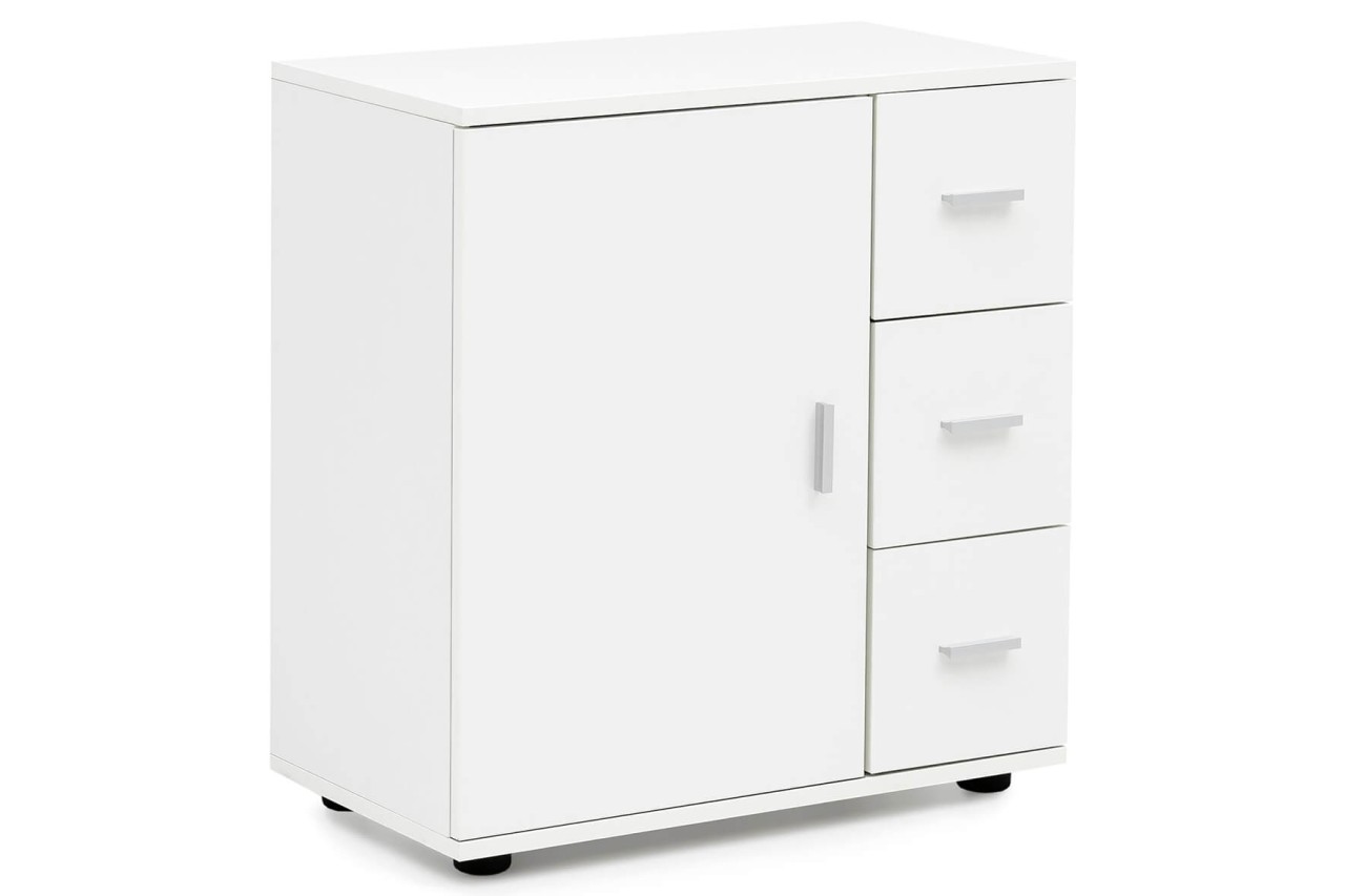 - Zwei Türfächer und drei Schubladen sorgen für viel Stauraum