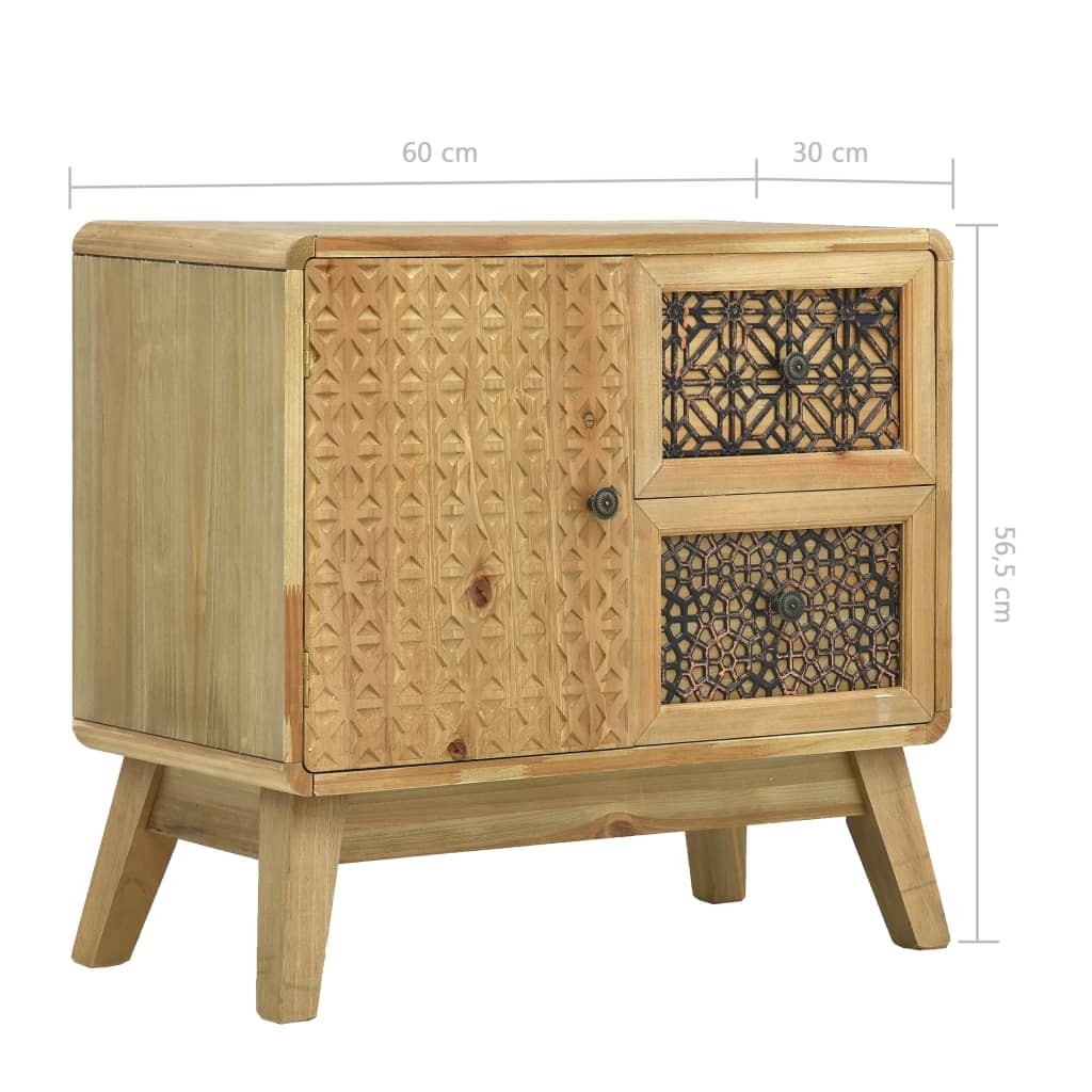 Dieser Beistellschrank ist eine praktische und zugleich sehr dekorative Ergänzung für Ihr Schlafzimmer, Ihren Wohnbereich oder Ihr Wohnzimmer! Die rechteckige Oberseite ist ideal zum Aufstellen eines Telefons oder zur Präsentation von Dekorationsgegenständen wie Fotorahmen oder Topfpflanzen. Die 2 Schubladen und 1 Tür mit Schnitzmuster bieten viel Platz, um kleinere Gegenstände aller Art geordnet und griffbereit aufzubewahren.