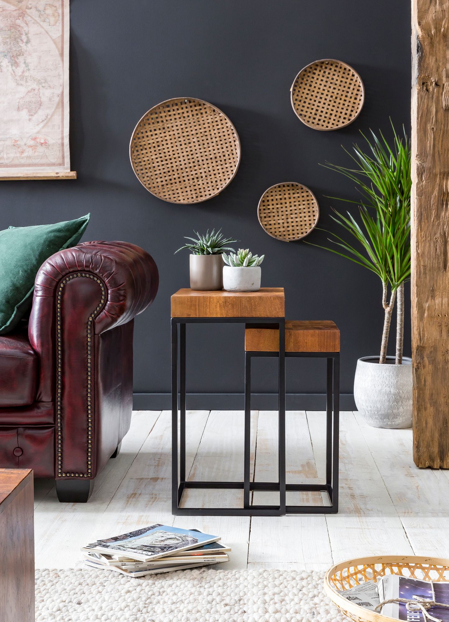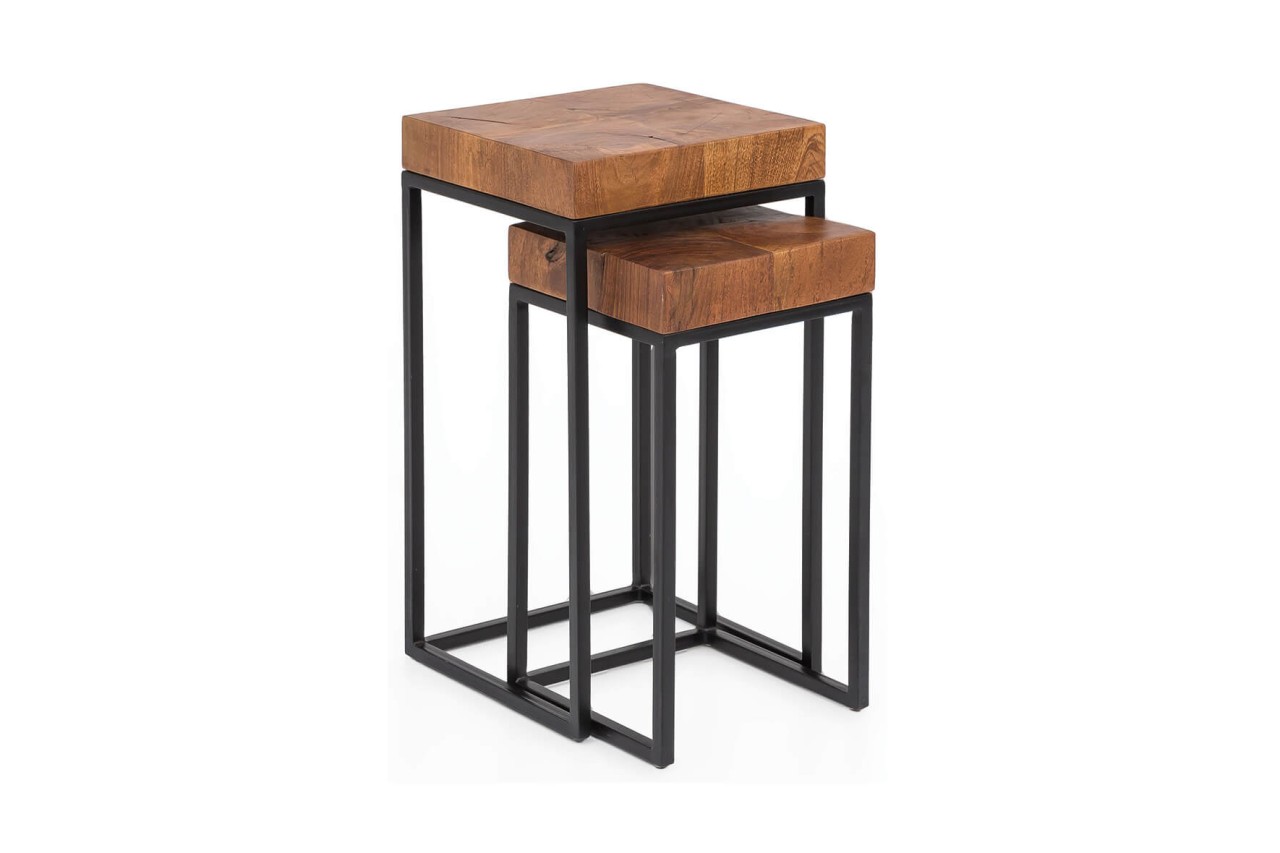 Unser Beistelltisch Set SEON zeichnet sich durch sein modernes Design im industriellen Look aus. Die Beistelltische aus Sheesham Holz und Metall sind richtige Hingucker und machen in vielen Räumen super Figur. Die kleinen Holz-Anstelltische besitzen eine tolle Holzmaserung und sind handgefertigt - somit ist jedes Set ein Unikat. In unserem Shop findest du tolle weitere Produkte der Serie SEON.