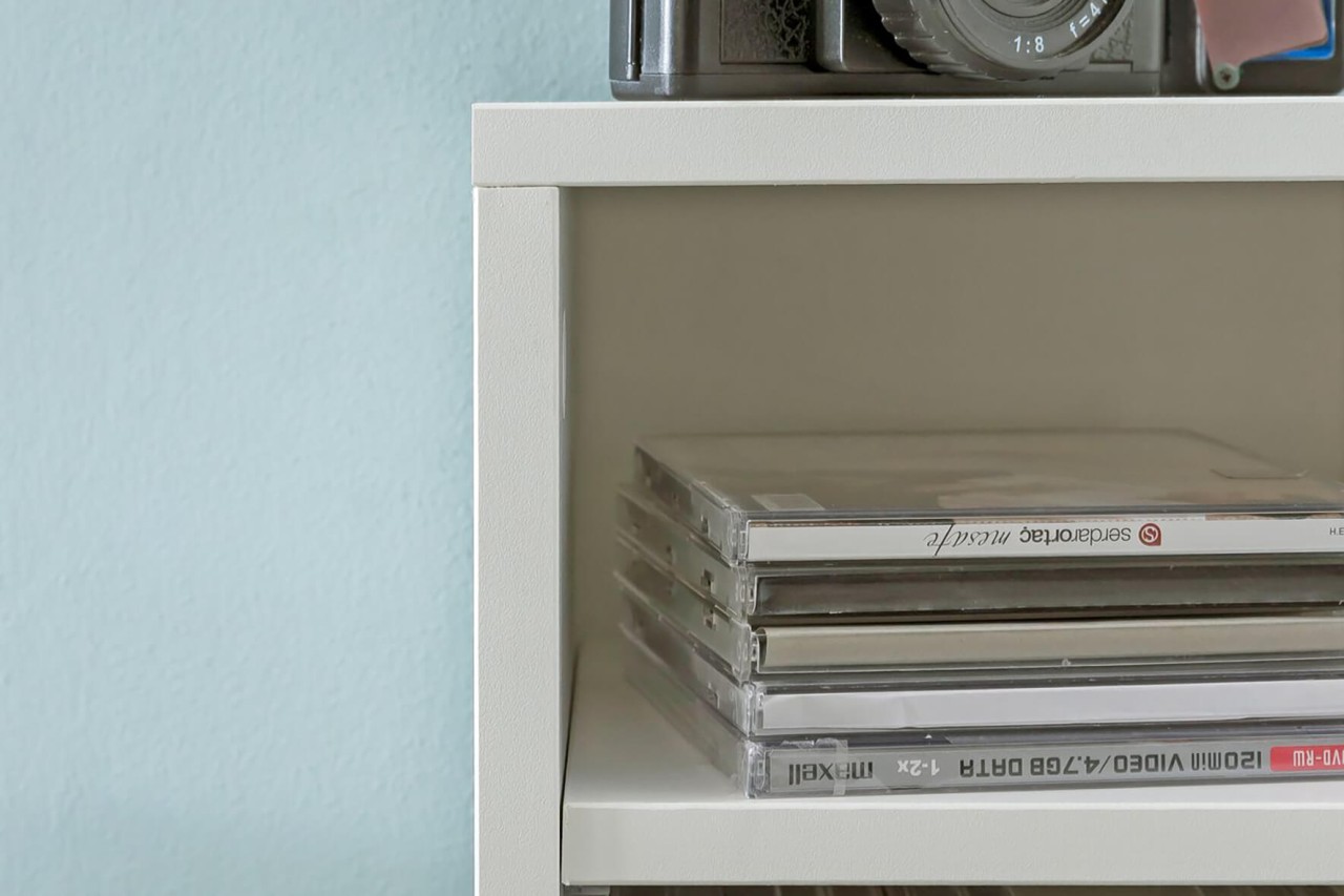 - Ein CD-Regal ohne Dekoration