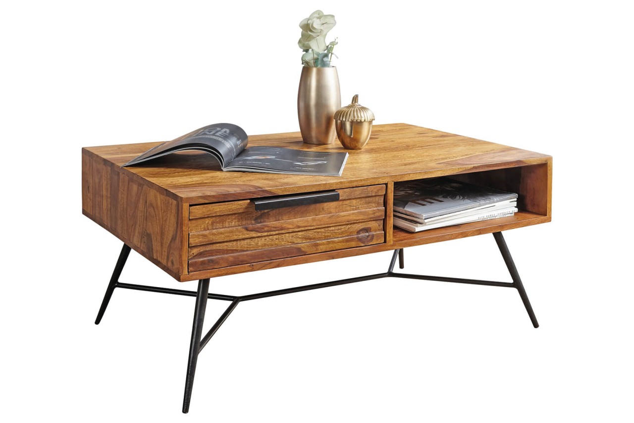 tinkaro Sofatisch NALI Couch Holztisch 013058 Schublade Sheesham Sofatisch eckig Wohnzimmer