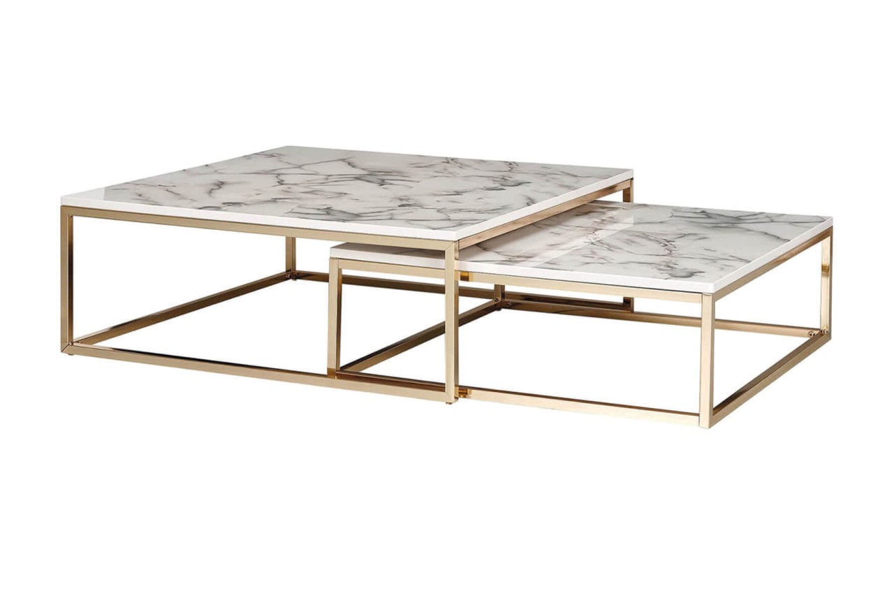 Schöner 2-teiliger Couchtische in Marmor Optik weiß Sofatisch von tinkaro