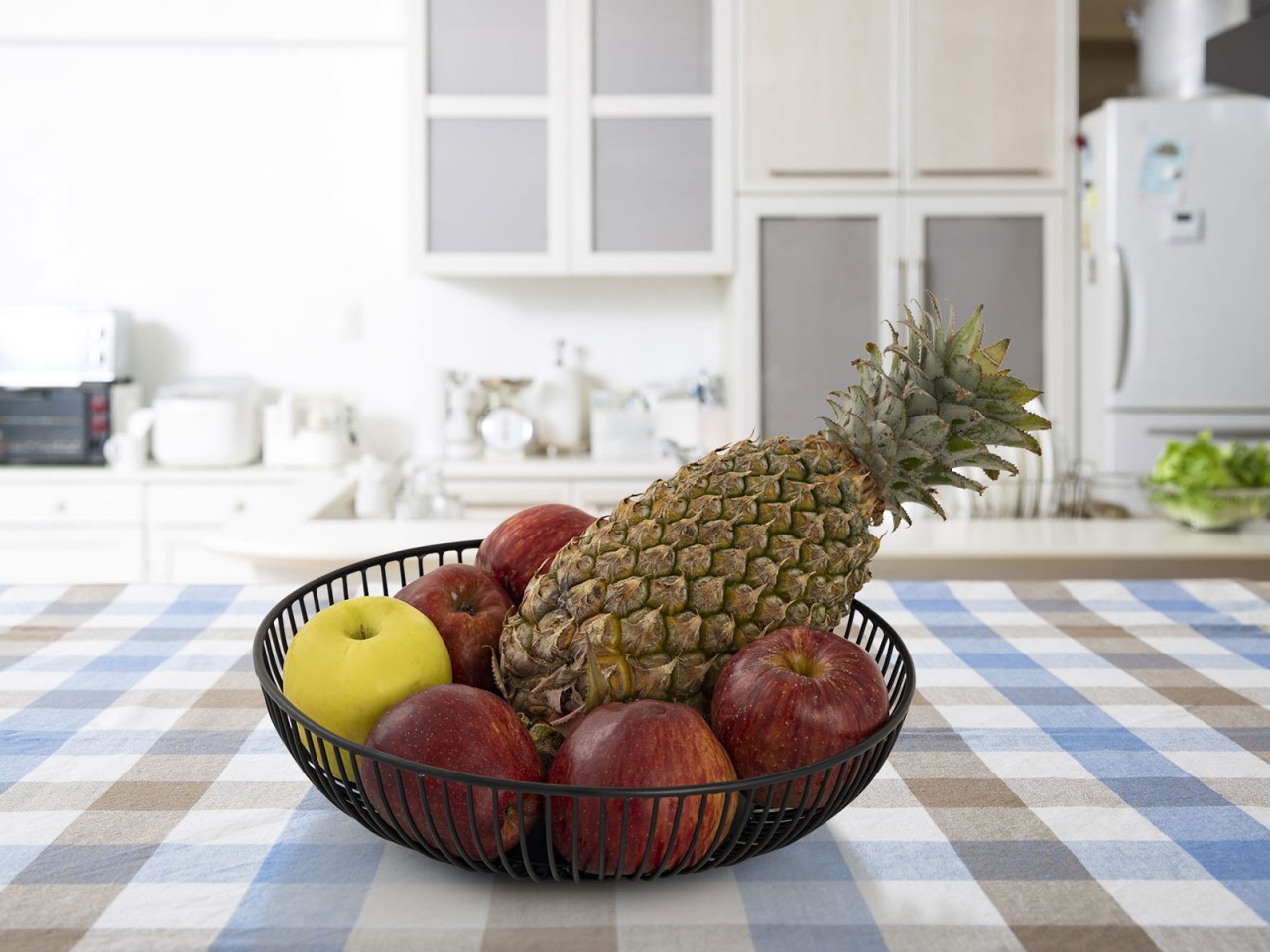 - Obstkorb in zeitloser Drahtstruktur sorgt für die nötige Luftzirkulation der Früchte