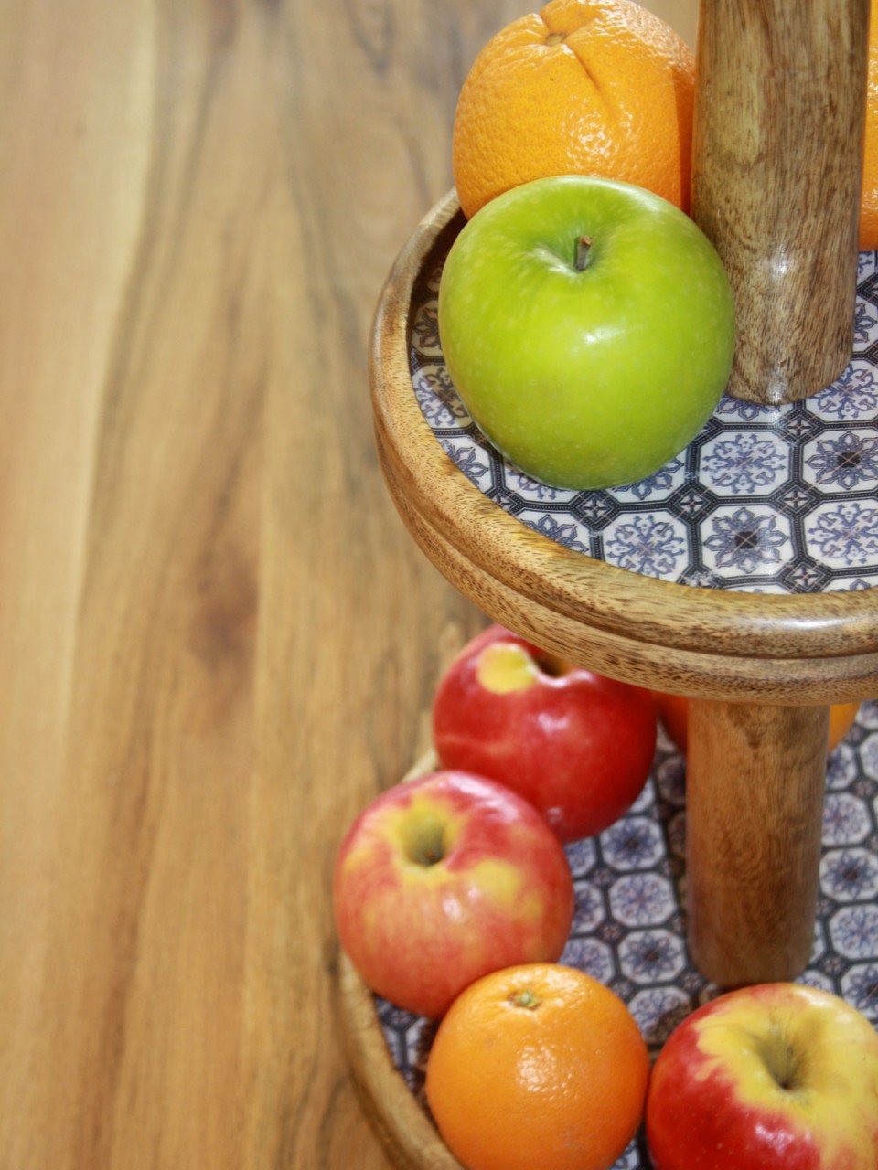 tinkaro Etagenständer ARLIND Mangoholz 900409 Etagere Lebensmittel-Ständer Braun/Blau/Weiß