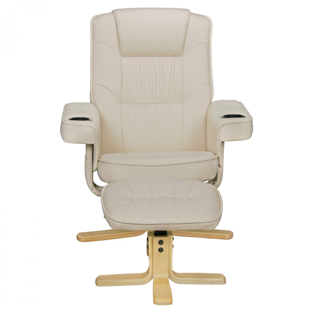 - Farbe: Armlehnenpolsterung, Bezug Sessel & Hocker: Beige / Fußkreuz Sessel & Hocker: Birkedekor, Holz / Getränkehalter: Schwarz