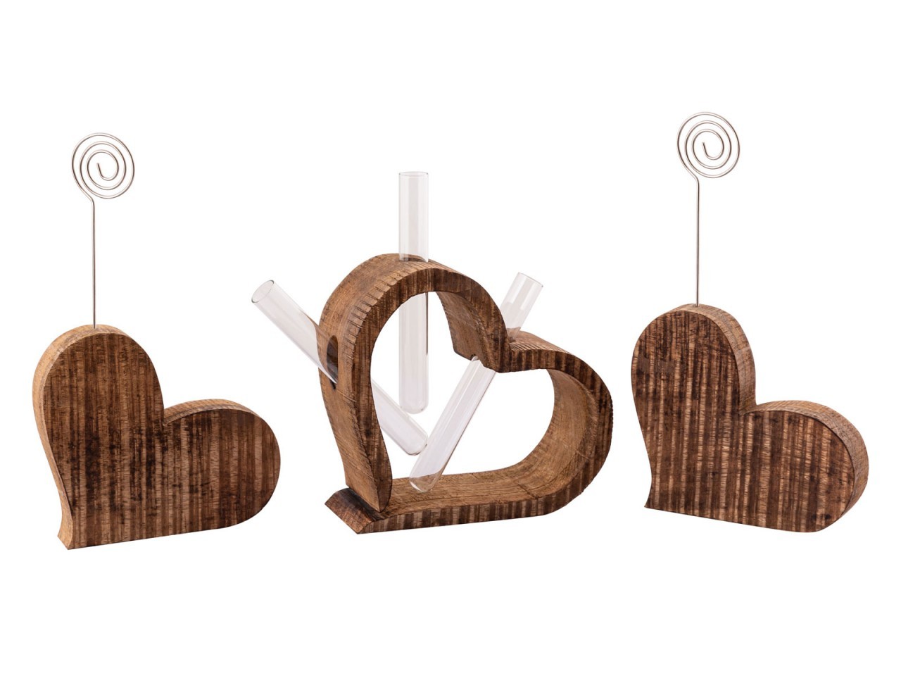 - Tischdeko Set aus Blumenvase und Fotohaltern hochwertig verarbeitet aus 100 % natürlichem Mangoholz sägerauh