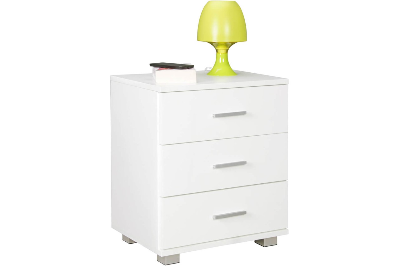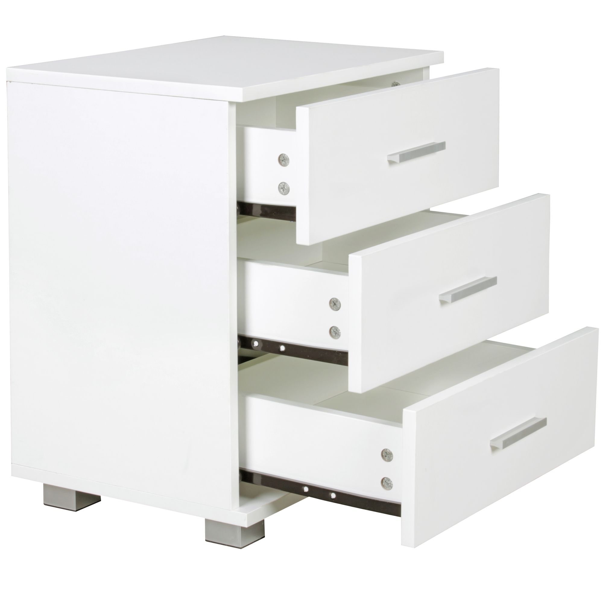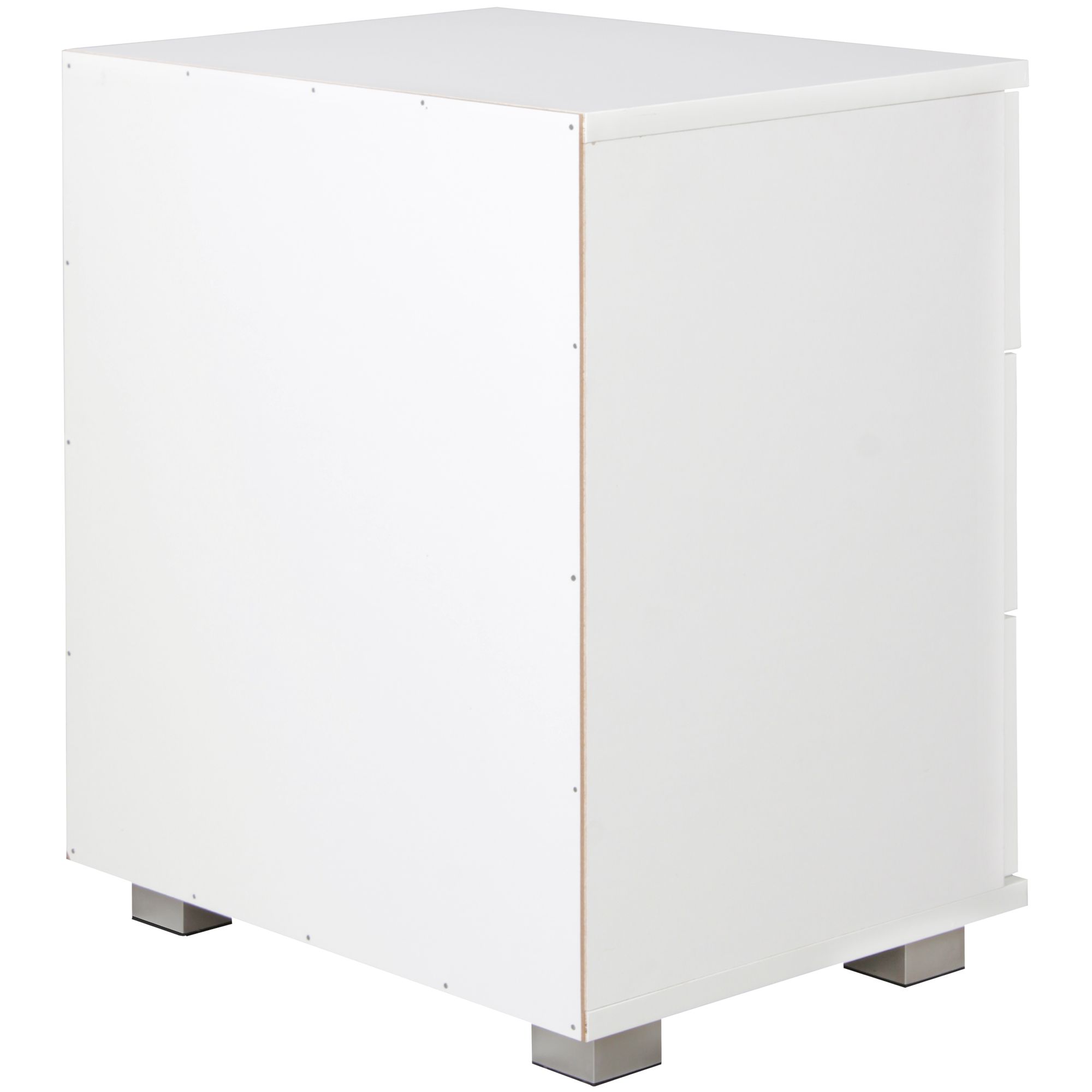 - Farbe: Komplettes Nachtkästchen ist weiß furniert / Standfüße sind Silber matt lackiert