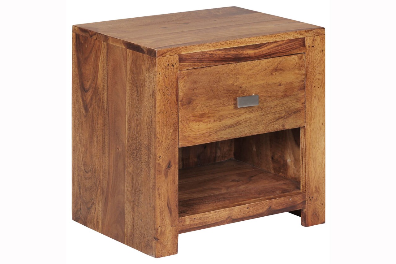 Produktinformationen "tinkaro Nachttisch eckig CHARLIE Sheesham Massiv-Holz Lowboard Braun"