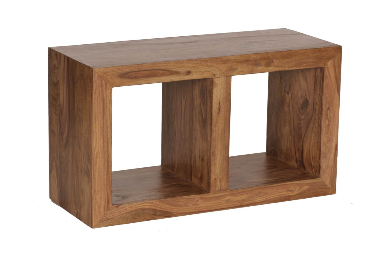 Unser kleines Holzregal NOLA besticht durch eine schöne und schlichte Form. Das kleine Holzregal bietet durch seine zwei Fächer und Ablagefläche viele Möglichkeiten deine Deko, Bücher oder andere Utensilien unterzubringen. Durch die praktische rechteckige Form kann das Regal unterschiedlich aufgestellt werden (hoch oder quer) und ist so noch flexibler einzusetzen. Das regal besteht aus massivem Sheeshamholz und wird in Handarbeit gefertigt. Jedes Produkt ist daher ein absolutes Unikat.