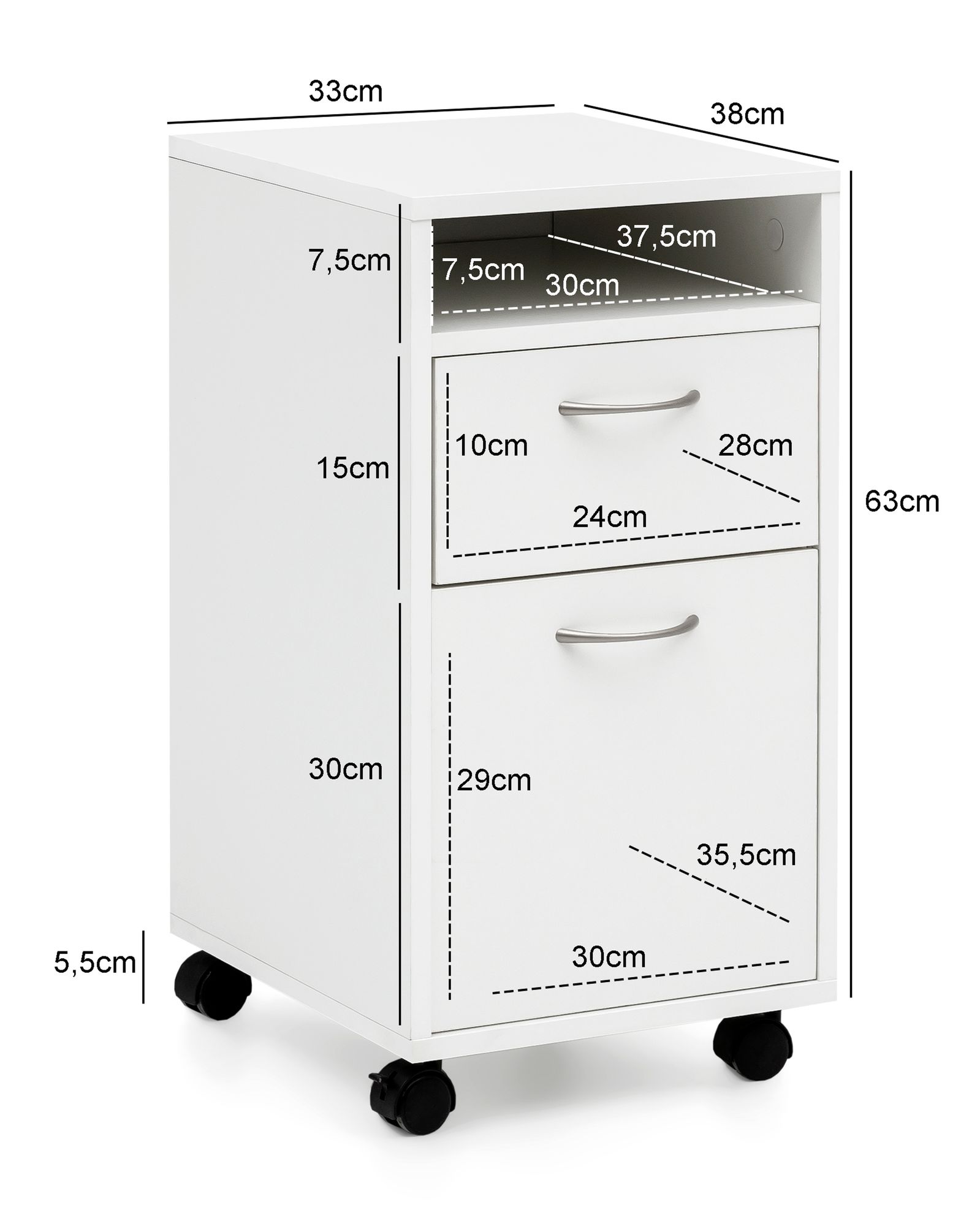 tinkaro eckiger Rollcontainer ANNETTE Holz 013124 Schreibtisch-Unterschrank Roll-Kommode Weiß