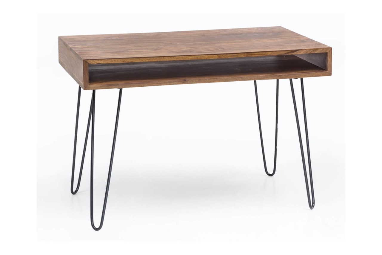 tinkaro Arbeitstisch KARU Schreibtisch 013002 Home Office Sheesham Bürotisch mit Metallbeinen
