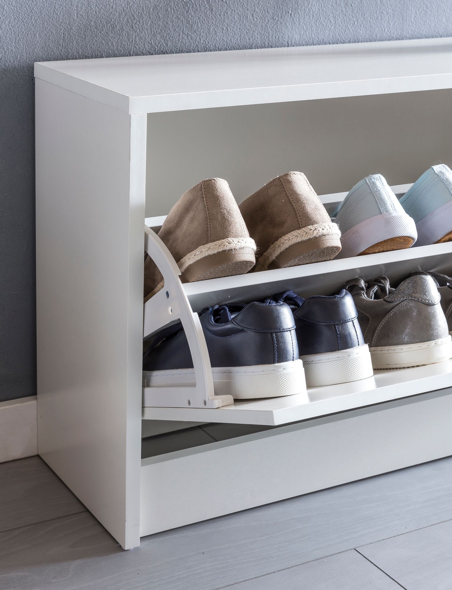 - Ein Kippfach mit 2 Unterfächern für Ihre Schuhe