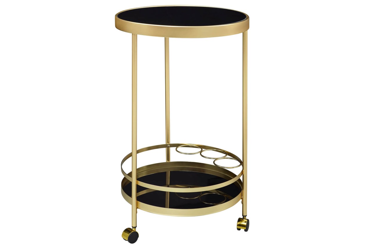 tinkaro Servierwagen rund PETRE Glas/Stahl Beistelltisch Gold/Schwarz