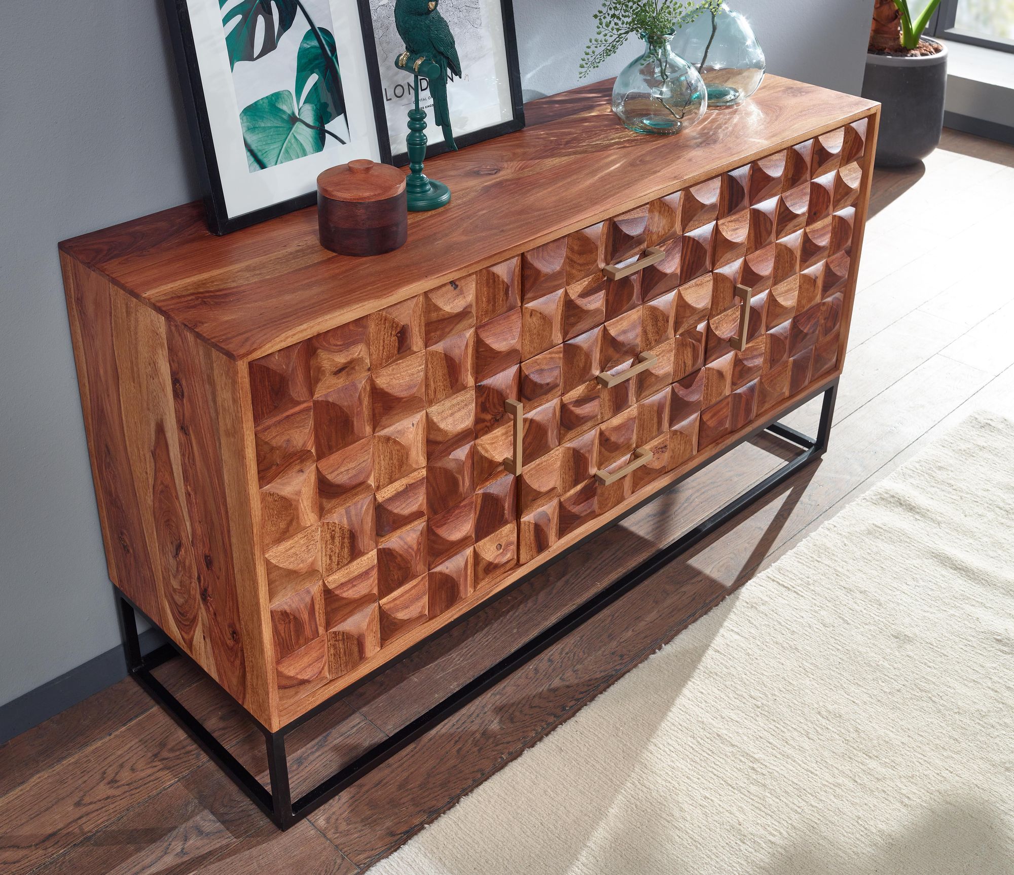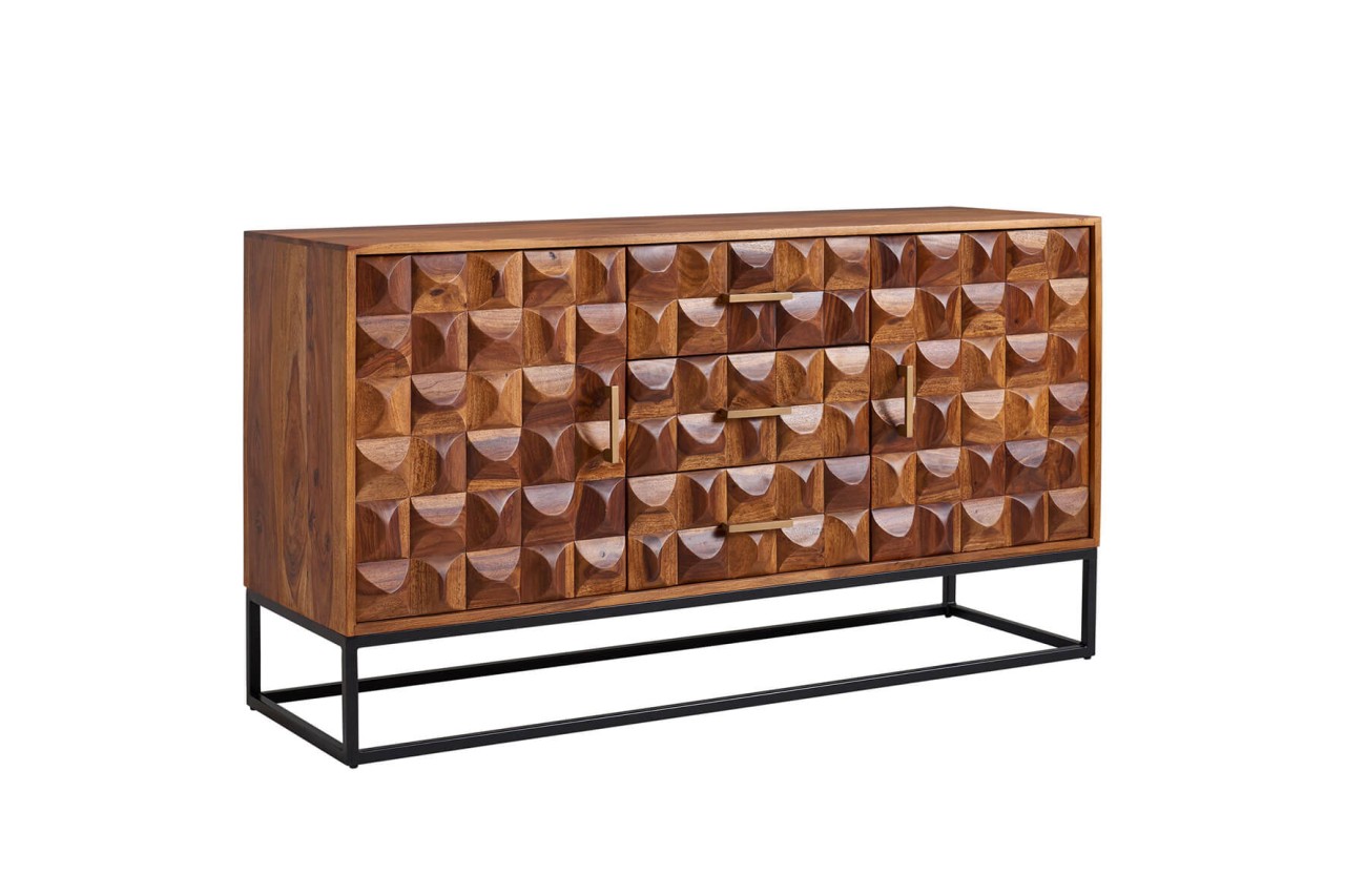 tinkaro Sideboard BERIA Sheesham Massivholz/Metall Anrichte Braun