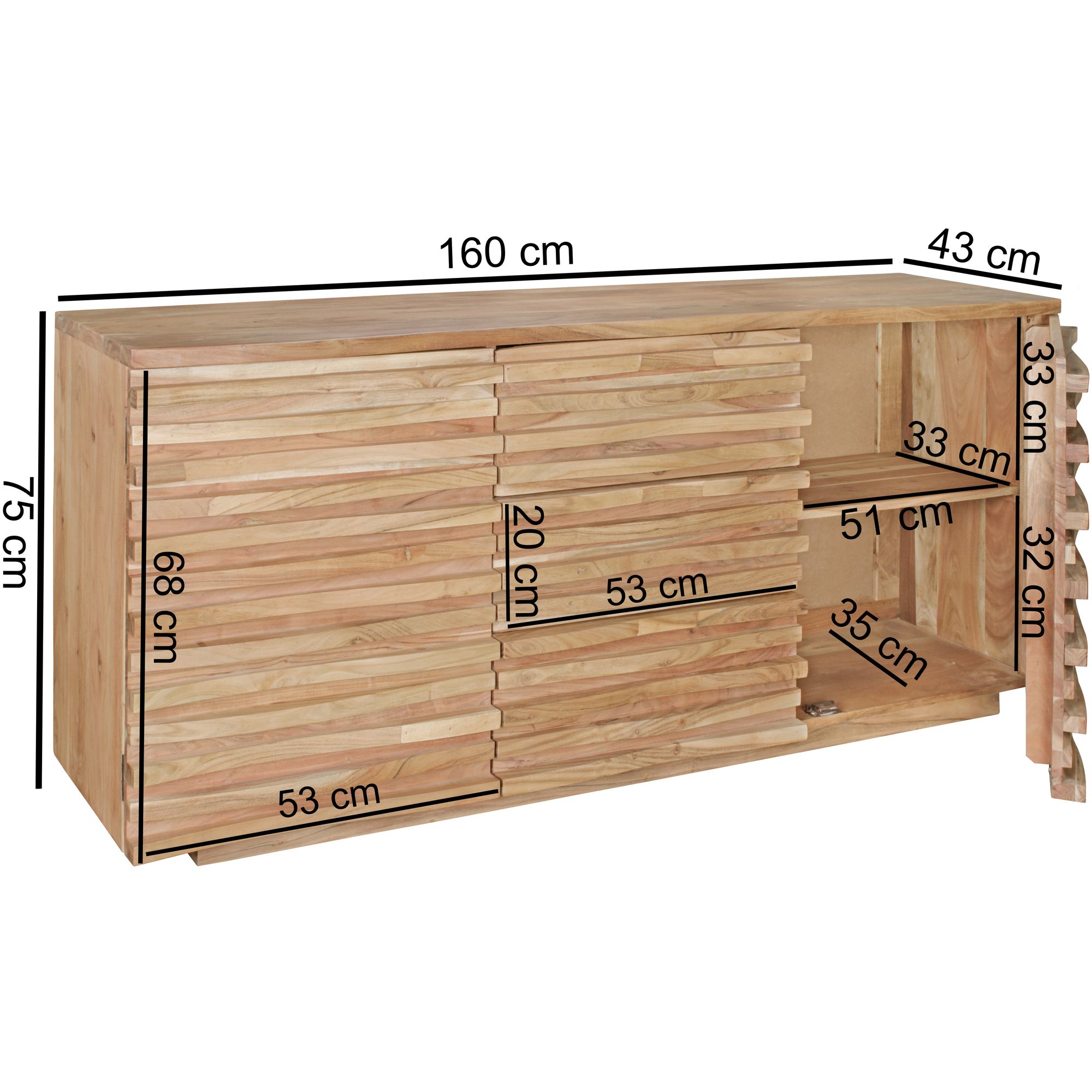 tinkaro Sideboard KUNO große Anrichte Akazie Design Kommode aus Holz