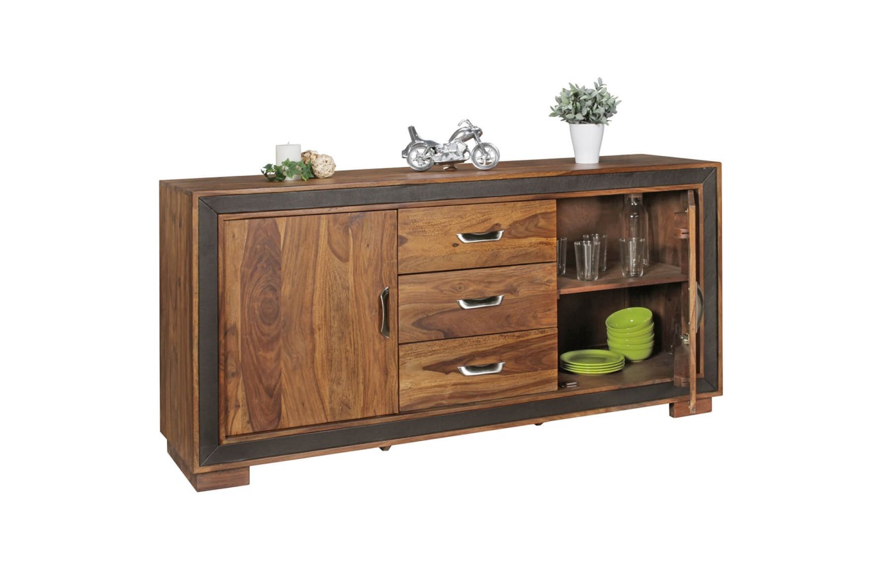 tinkaro eckiges Sideboard SIBYLLA Sheesham Massivholz 012194 Anrichte Kommode mit Schubladen & Türen Braun