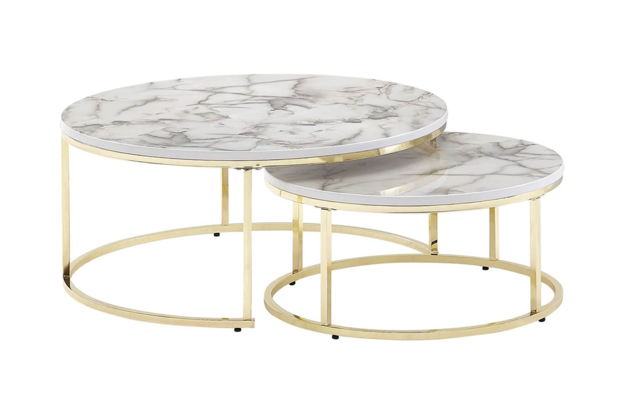 Unser Couchtisch Set YUVA in Marmor Optik Weiß macht einen besonders hochwertigen Eindruck in deinem Wohnbereich. Durch die tolle Marmoroptik beider Platten wirkt der Materialmix hochmodern, allerdings ebenso zeitlos. Die Tische sind robust und lassen sich praktisch ineinanderschieben. Ebenso lassen sich die beiden Tische an unterschiedliche Stellen in deinen Räumen platzieren, um noch flexibler in der Einrichtung zu sein. Vor oder neben deinem Sofa machen die schönen Tische einen tollen Eindruck. Du findest die Serie YUVA in 3 Ausführungen in unserem Shop - in Marmor Optik Schwarz. Marmor Optik Weiß und mit Eichenholz, alle 3 Sofatische haben Ihren eigenen Charakter.