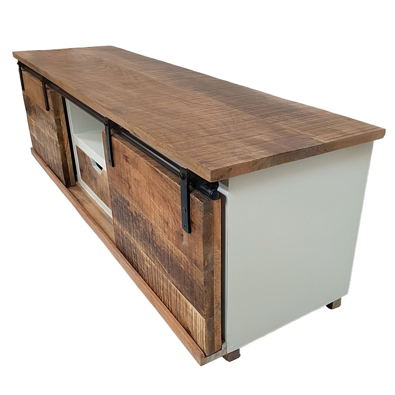 tinkaro TV Schrank DRUSO Mangoholz massiv 900239 Lowboard Fernsehschrank Weiß/Braun