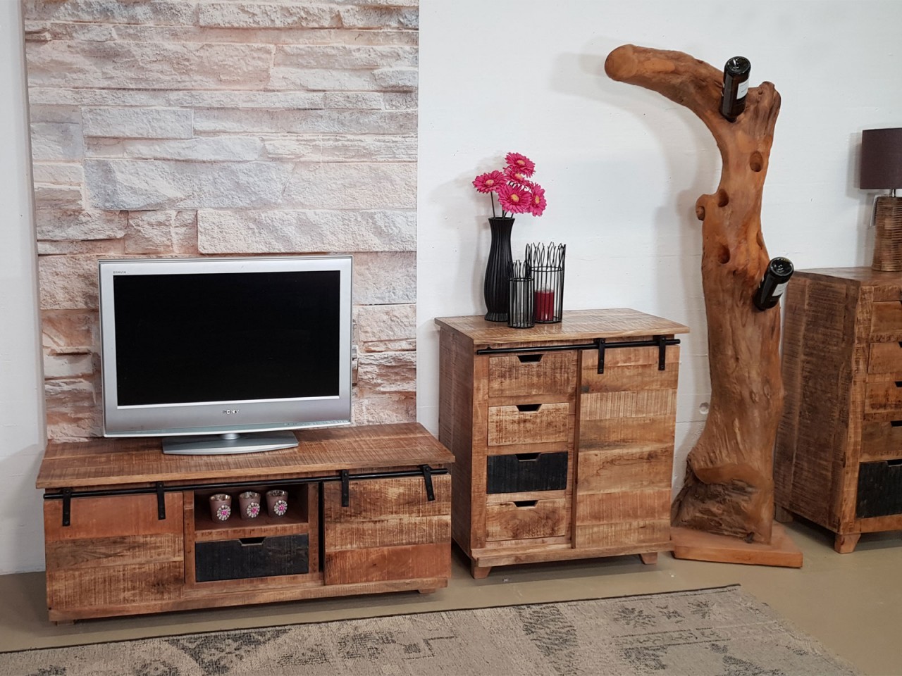 - Massives Lowboard aus recyceltem Mango-Altholz
